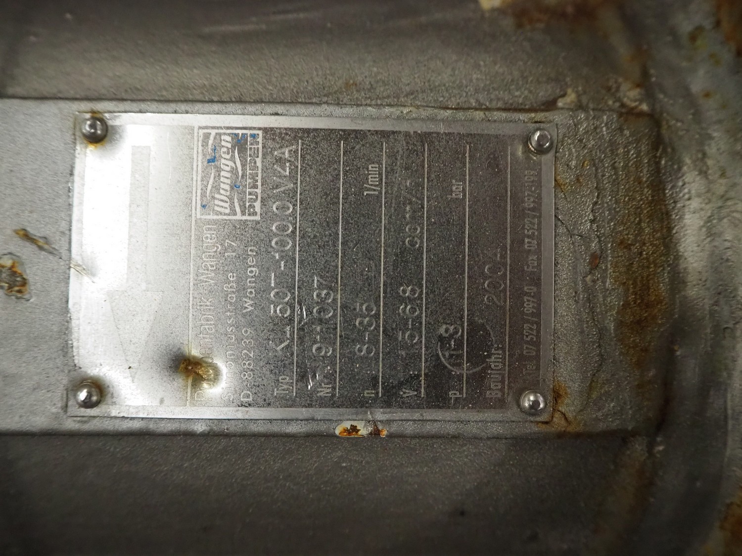 Pumpenfabrik Wangen progressive cavity pump, type: KL 50T-100.0 V4A, number: 911037, year of construction: 2004, dimensions: 2400 mm x 520 mm x 1550 mm.