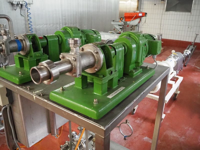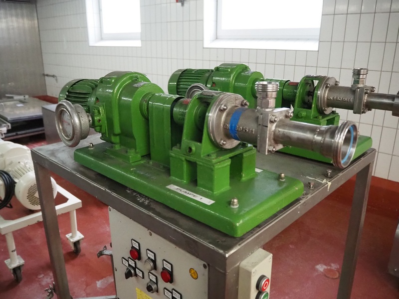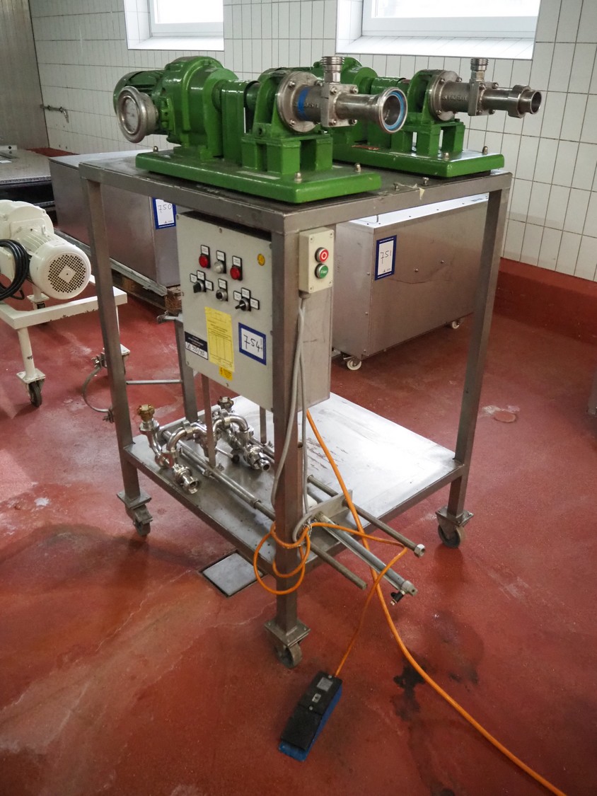 S/s trolley with 2 Netzsch progressing cavity pumps, type: (2x) IBD 15, year of construction: 1977, total dimensions: 1200 mm x 800 mm x 1500 mm.