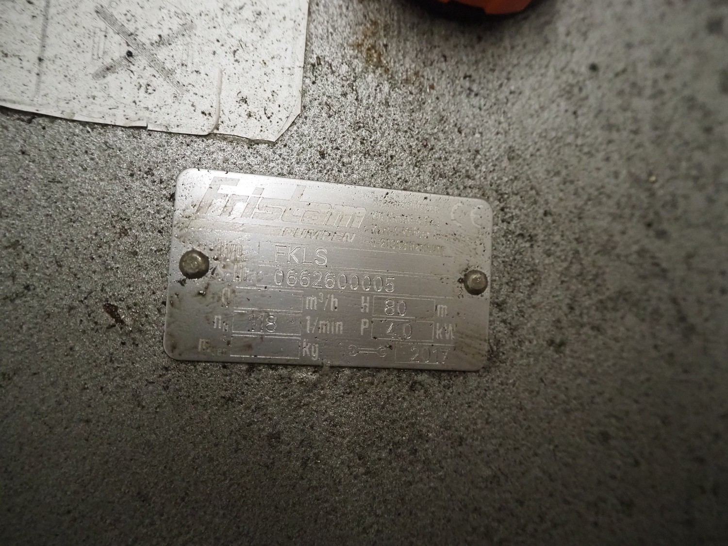 Fristam piston pump, type: FKLS, number: 0662600005, dimensions: 1200 mm x 450 mm x 650 mm.