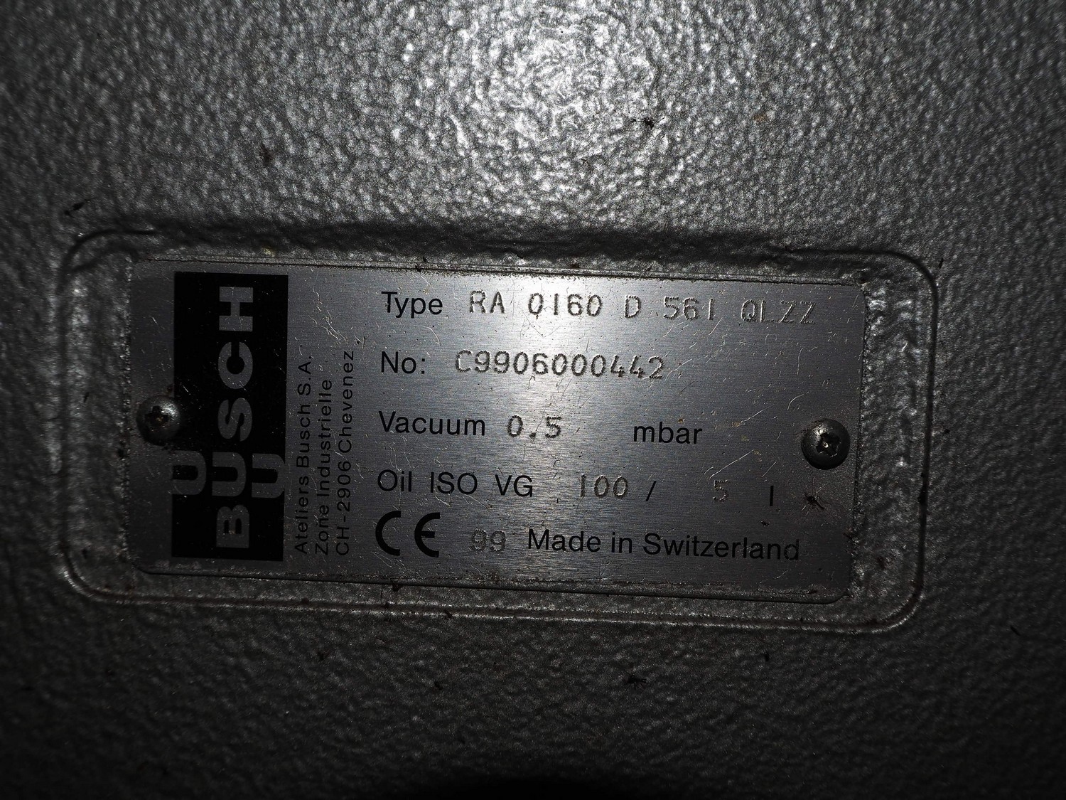 Busch vacuum pump, type: RA 0160 D 561 QLZZ, number: C9906000442, dimensions: 900 mm x 500 mm x 700 mm.