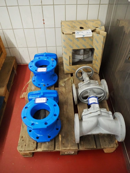 2 Keulahütte and 3 Sisto valves, DN150 and DN100, dimensions: 550 mm x 300 mm x 220 mm.