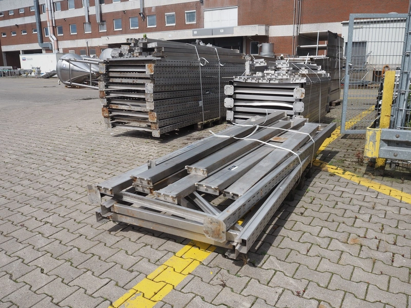 S/s pallet rack, uprights: (30x) 1100 mm x 2950 mm, beams: (45x) 2700 mm, (17x) 1800 mm, (9x) 900 mm.
