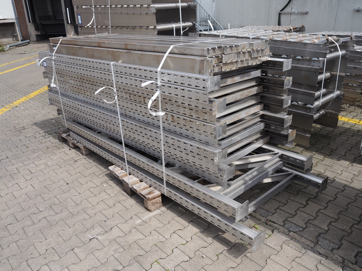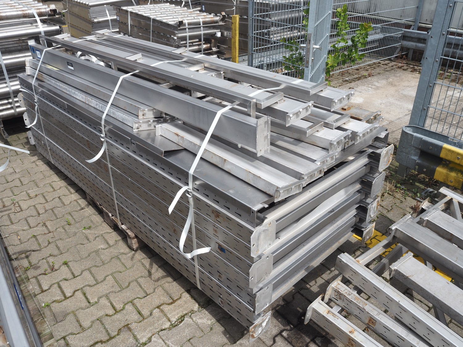 S/s pallet rack, uprights: (30x) 1100 mm x 2950 mm, beams: (45x) 2700 mm, (17x) 1800 mm, (9x) 900 mm.