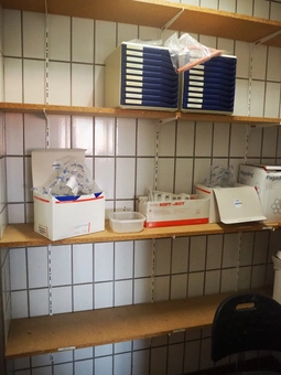 2 boxes with Eppendorf pipettips and 1 box of single use syringes.0 bidsLot is closed -
