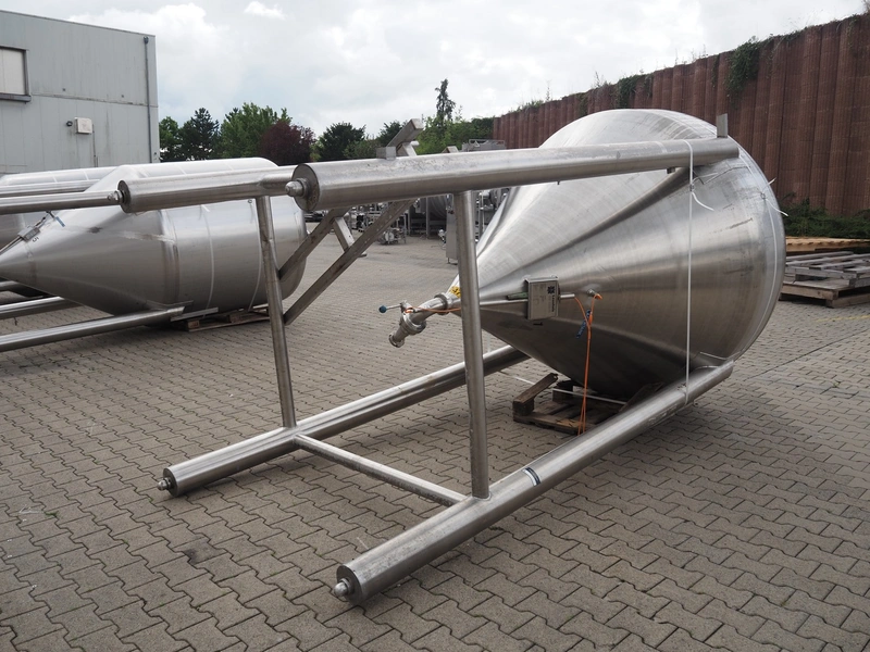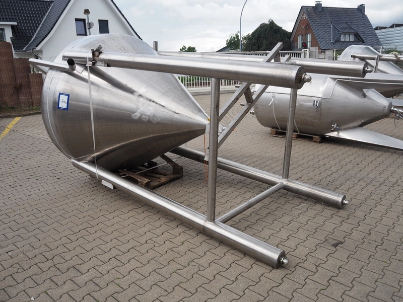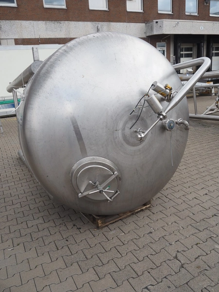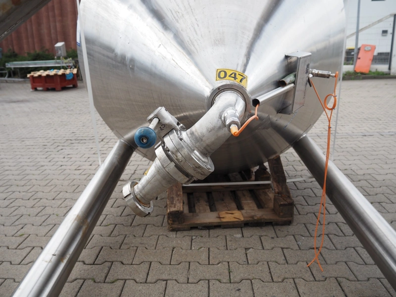 Leushuis s/s storage tank for mayonnaise, fabrication number: A-32058-3007 H-2, year of construction: 1989, medium: Salatmayonnaise, capacity: 3500 liter, hydrostatic test pressure: 0.9 bar, design temperature: 50 °C, empty weight: 425 kg, dimensions: Ø 2000 mm x 3600 mm.