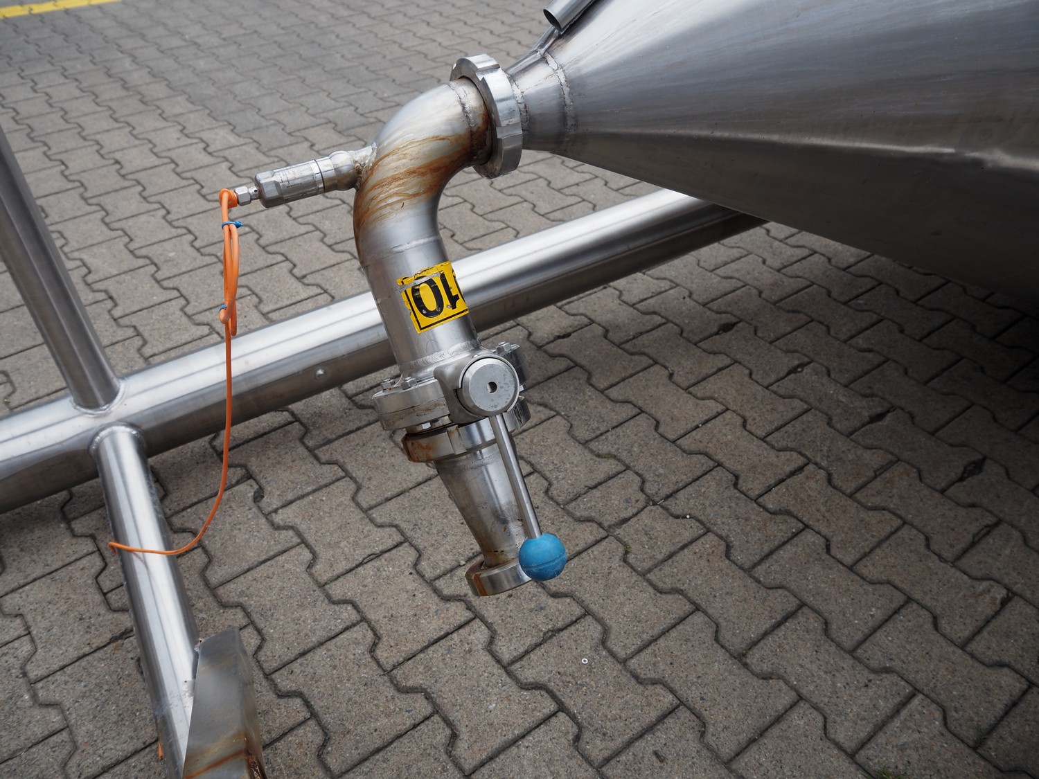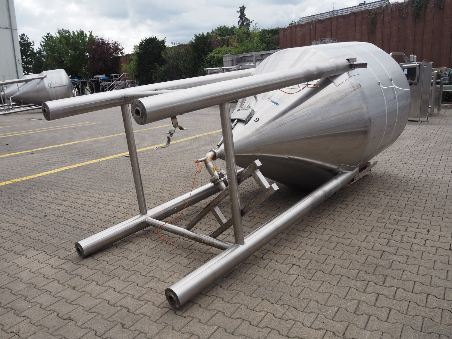 Leushuis s/s storage tank for mayonnaise, fabrication number: A-32058-3005 H-2, year of construction: 1989, medium: Salatmayonnaise, capacity: 5000 liter, hydrostatic test pressure: 0.9 bar, design temperature: 50 °C, empty weight: 580 kg, dimensions: Ø 1800 mm x 4900 mm. Tank is damaged.