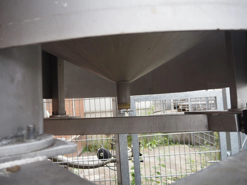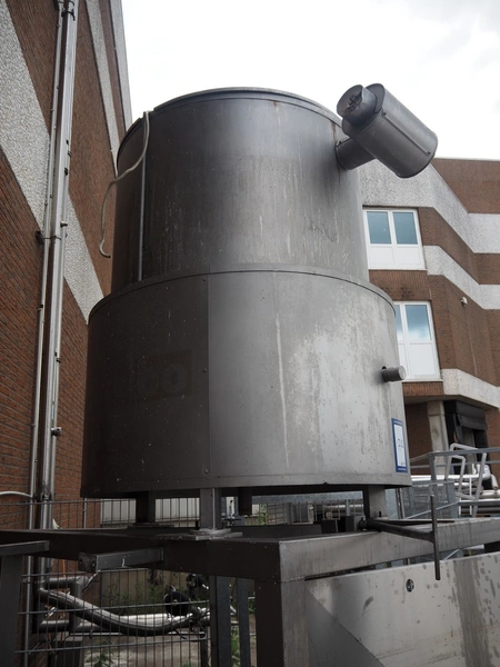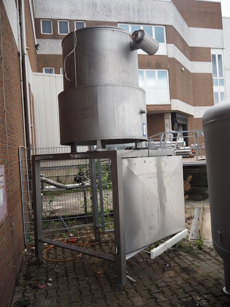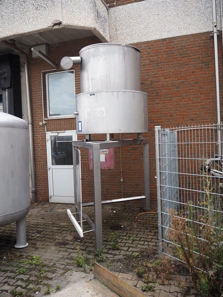 Alco s/s tank on s/s frame, diameter tank: 1400 mm, height: 1400 mm, total dimensions: 2600 mm x 1900 mm x 3500 mm.