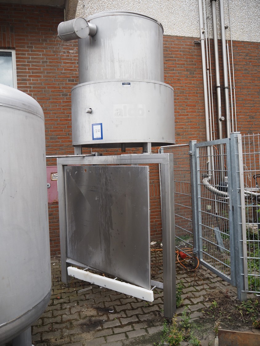 Alco s/s tank on s/s frame, diameter tank: 1400 mm, height: 1400 mm, total dimensions: 2600 mm x 1900 mm x 3500 mm.