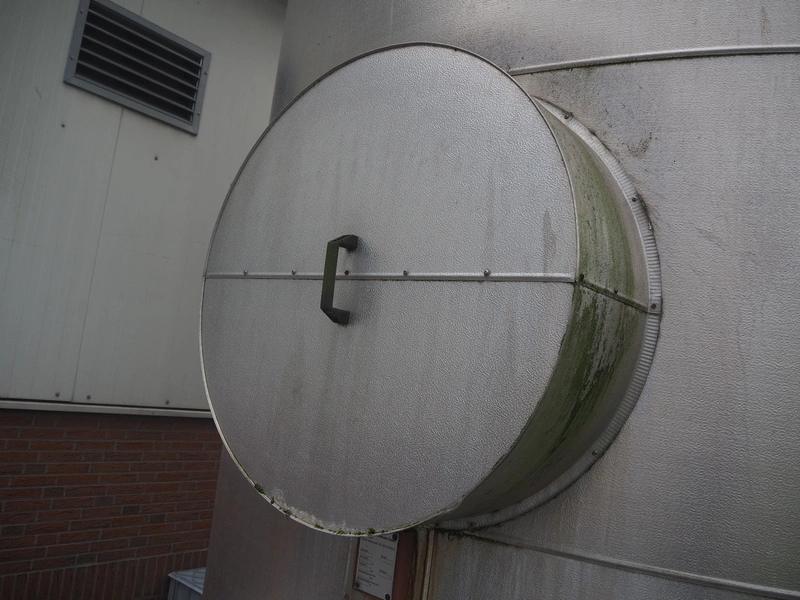 Heinz Oesterwiemann insulated tank used for warm water, number: 812, year of construction: 2006, volume: 98500, maximum / minimum temperature: 70 / 5 °C, dimensions: Ø 3750 mm x 12000 mm.