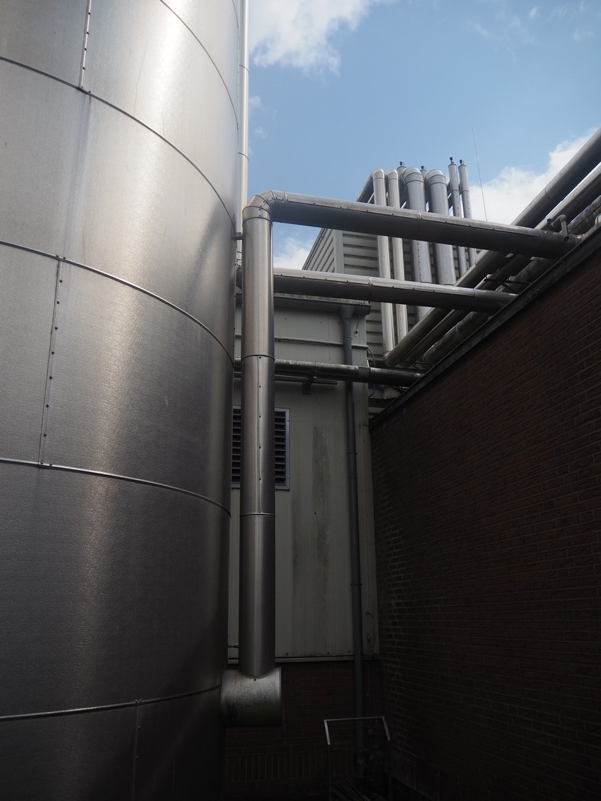 Heinz Oesterwiemann insulated tank used for warm water, number: 812, year of construction: 2006, volume: 98500, maximum / minimum temperature: 70 / 5 °C, dimensions: Ø 3750 mm x 12000 mm.