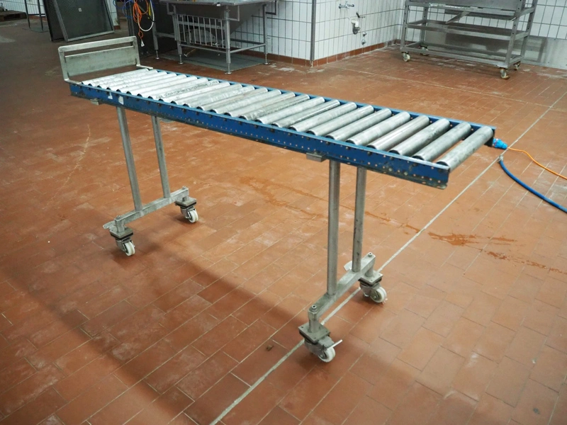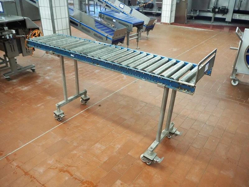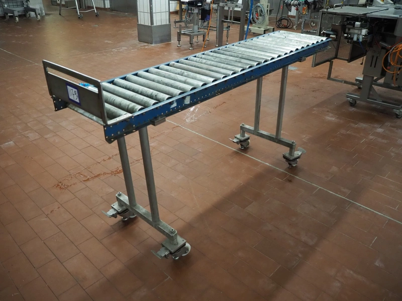 Mobile roller conveyor, steel frame, steel rollers, roller width: 390 mm, total dimensions: 4060 mm x 930 mm x 1050 mm.