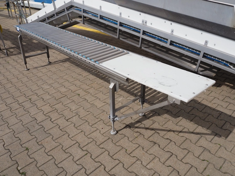 S/s roller conveyor, s/s rollers, roller width: 420 mm, total dimensions: 3400 mm x 500 mm x 800 mm.