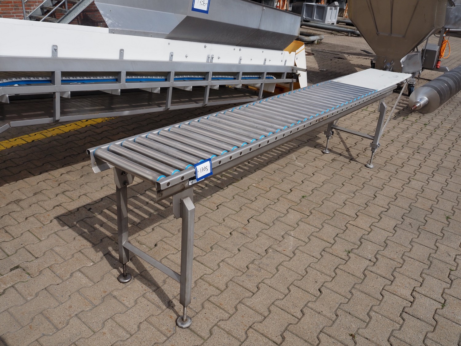 S/s roller conveyor, s/s rollers, roller width: 420 mm, total dimensions: 3400 mm x 500 mm x 800 mm.