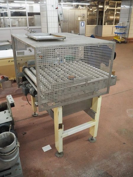 Roller conveyor, steel frame, s/s rollers, roller width: 730 mm, total dimensions: 1150 mm x 1050 mm x 1300 mm.