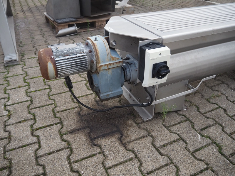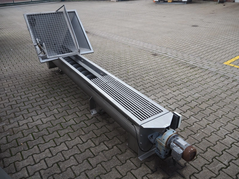 Kiremko elevating screw with bunker, s/s screw, screw diameter: 280 mm, tier: 200 mm, elevating height: 3700 mm, total dimensions: 1500 mm x 1100 mm x 4200 mm.