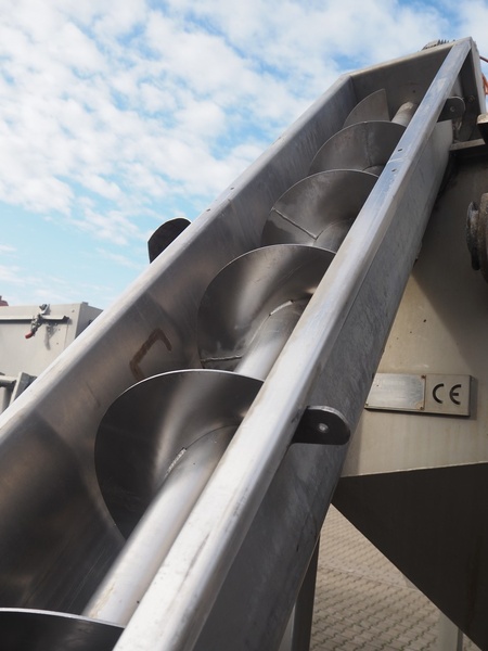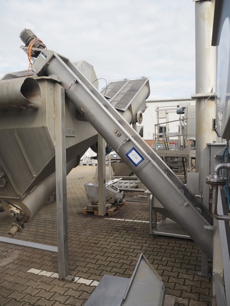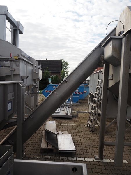 S/s elevating screw, diameter screw: 300 mm, tier: 300 mm, elevating height: 2700 mm, total dimensions: 3600 mm x 450 mm x 550 mm. Including pallet with parts.
