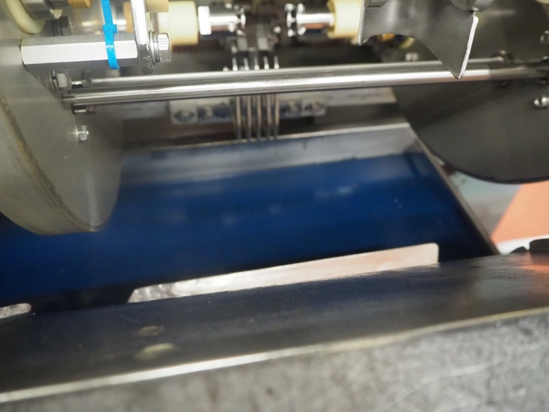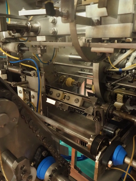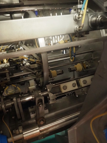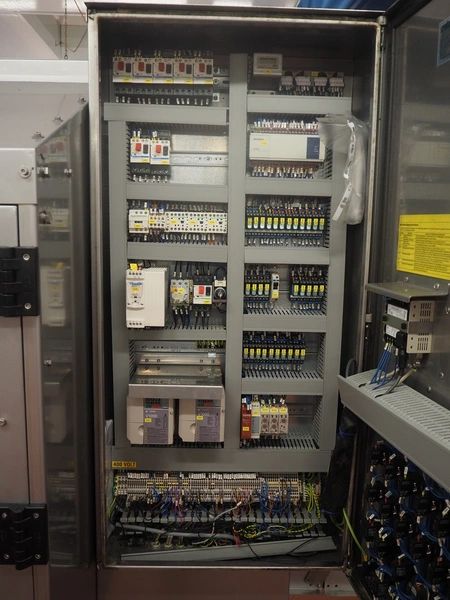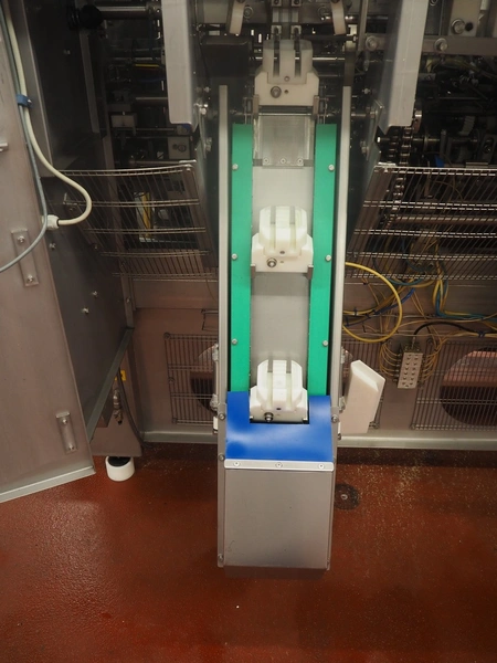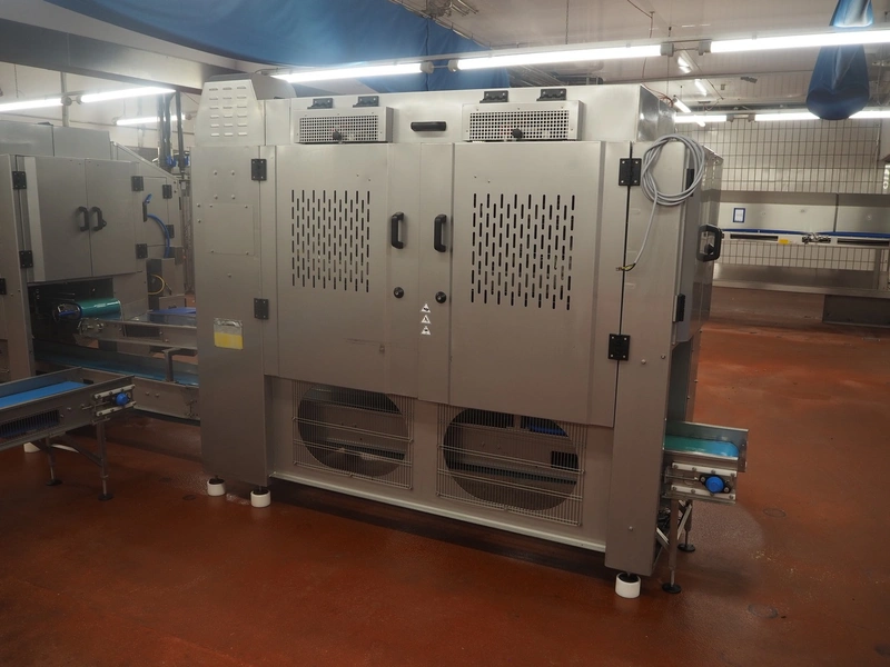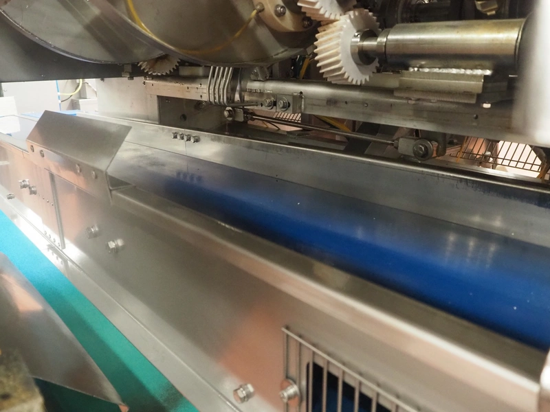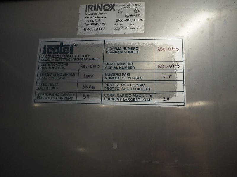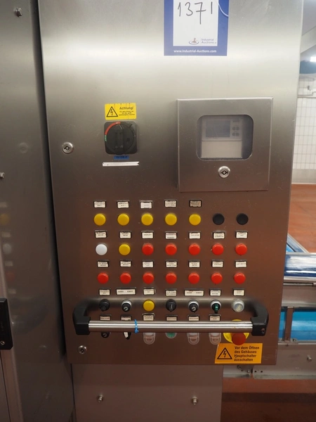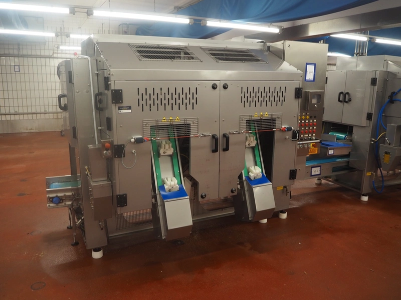 ABL fruit peeler for kiwi and mango, model: op30k, serial number: 137, year of construction: 2010, machine weight: 1500 kg, plastic belt, belt width: 300 mm x 400 mm, total dimensions: 5400 mm x 1750 mm x 2300 mm.
