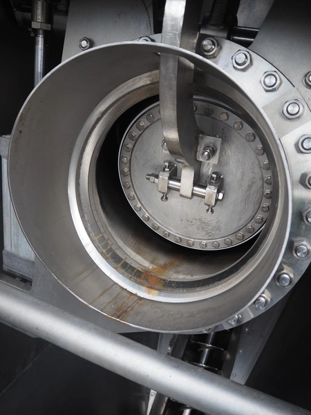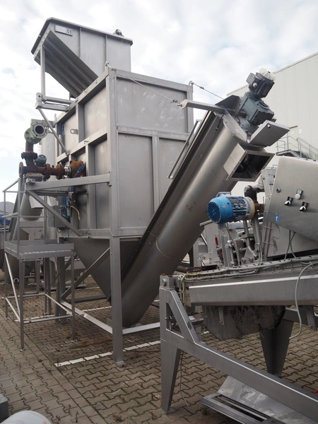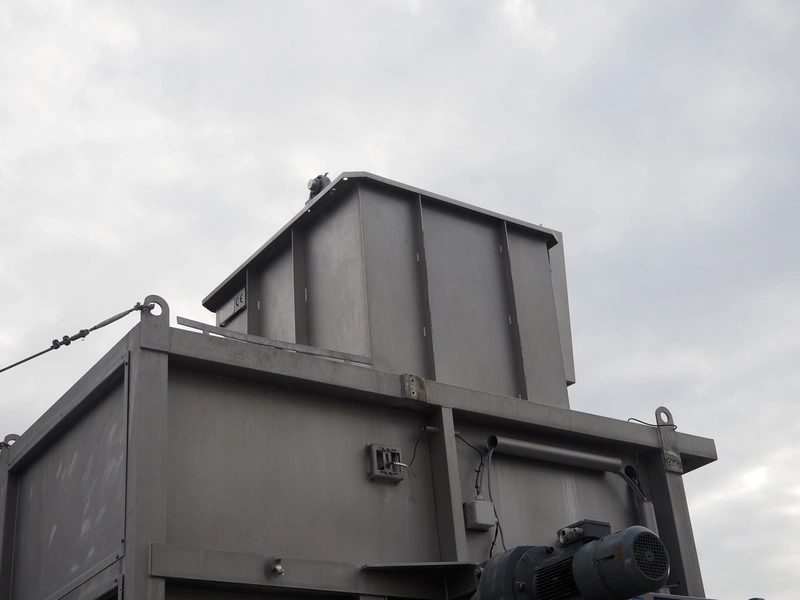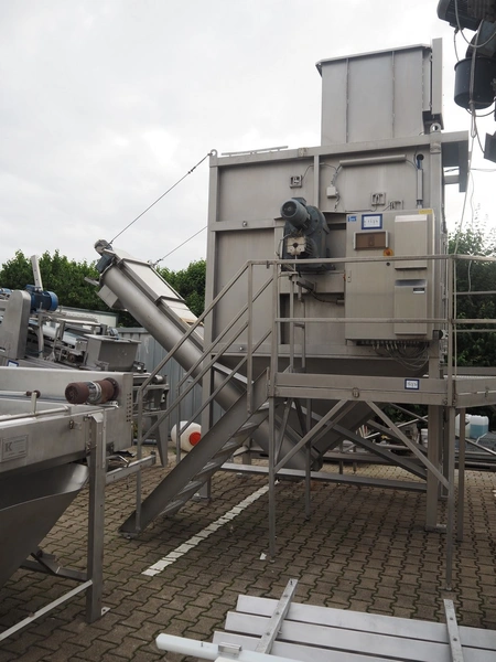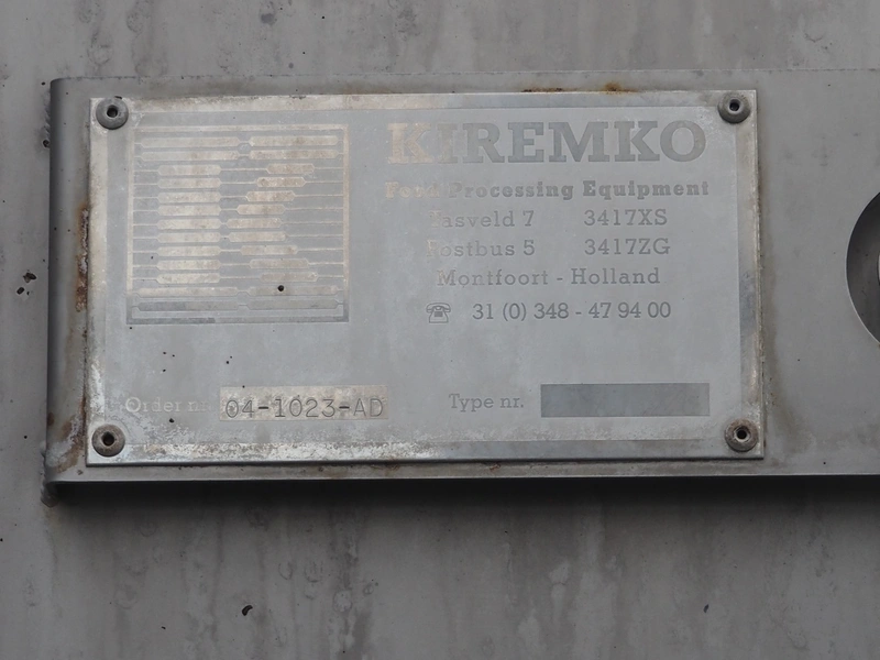 Kiremko steam peeler, order number: 04-1023-AF, s/s outfeed screw, screw diameter: 400 mm, tier: 250 mm, total dimensions: 4800 mm x 3200 mm x 5200 mm.