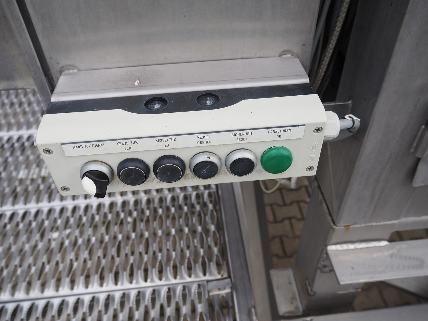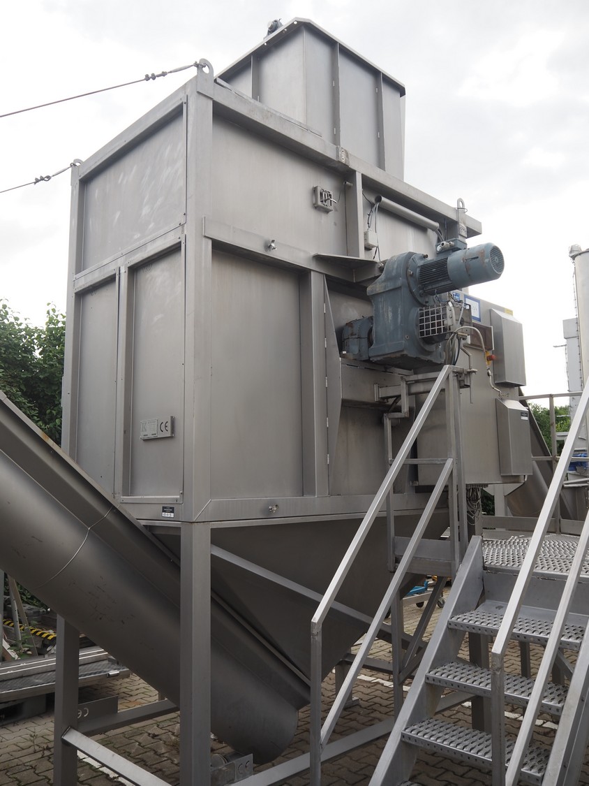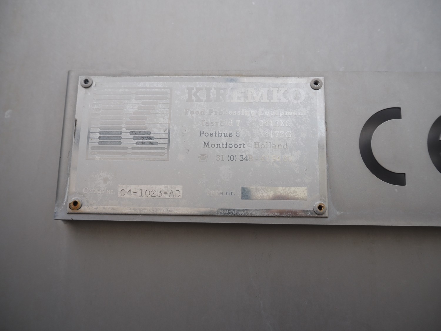 Kiremko steam peeler, order number: 04-1023-AF, s/s outfeed screw, screw diameter: 400 mm, tier: 250 mm, total dimensions: 4800 mm x 3200 mm x 5200 mm.
