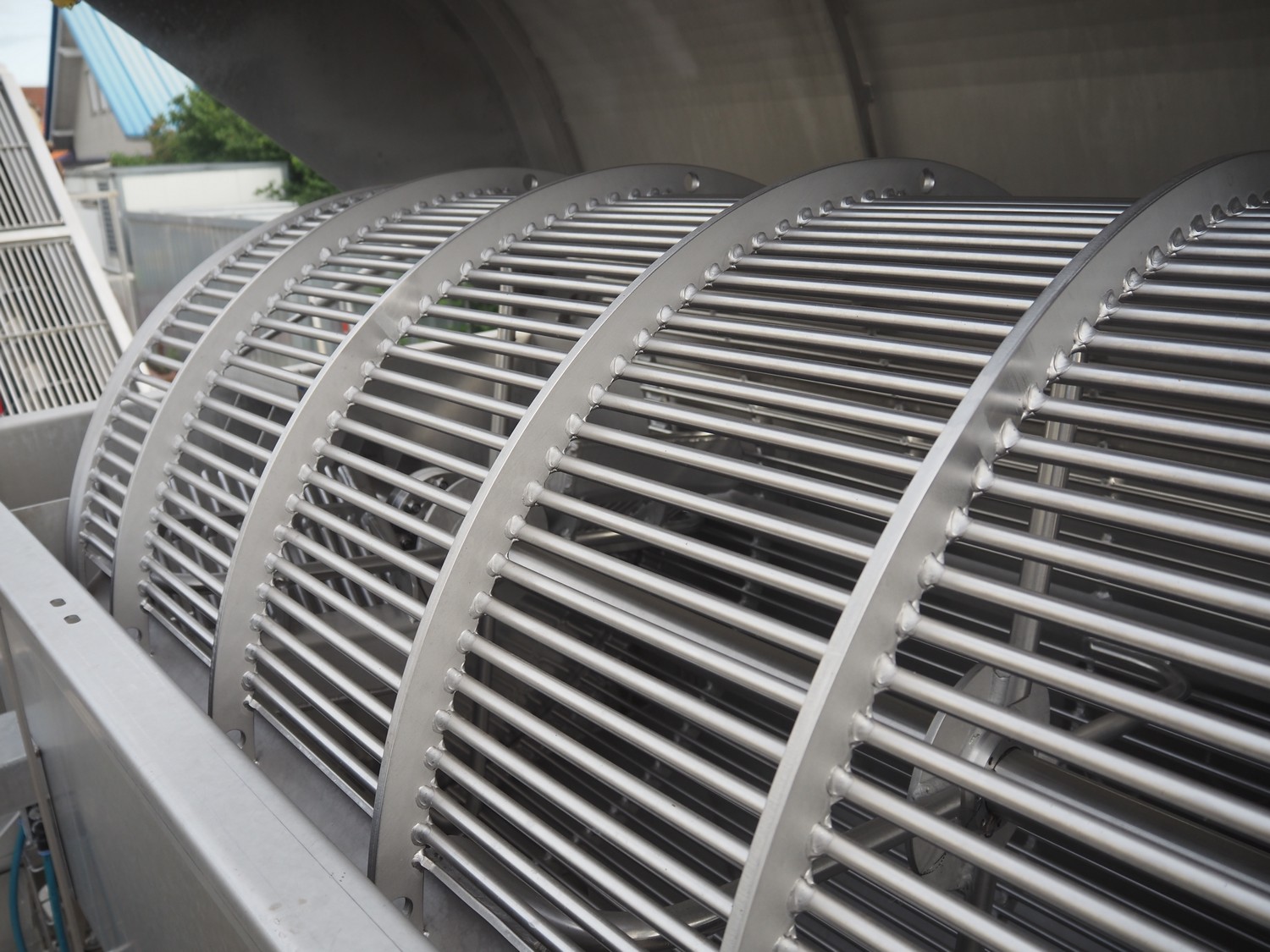 EIMA Food Processing Machines drum sieve, number: 2050039, year of construction: 2020, s/s drum diameter: 1000 mm, drum length: 2400 mm, total dimensions: 3200 mm x 1600 mm x 2850 mm.