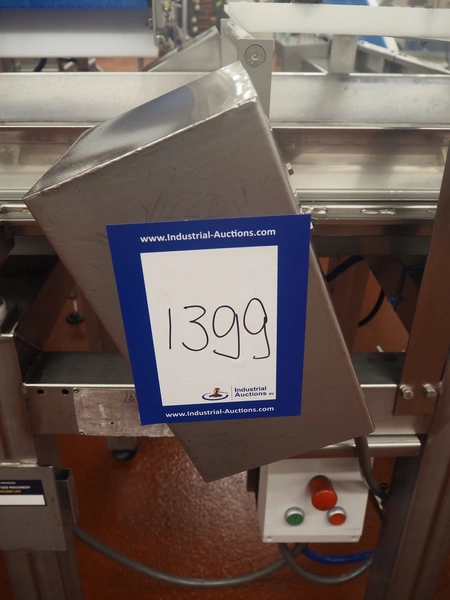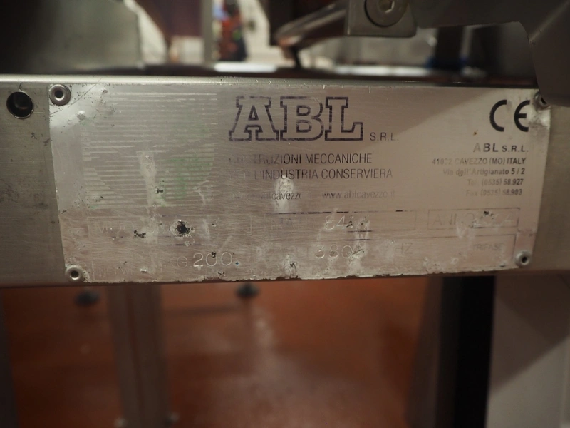ABL S.R.L. vibrating gutter, year of construction: 2004, 380 V, s/s gutter, gutter width: 390 mm, total dimensions: 1250 mm x 950 mm x 1350 mm.