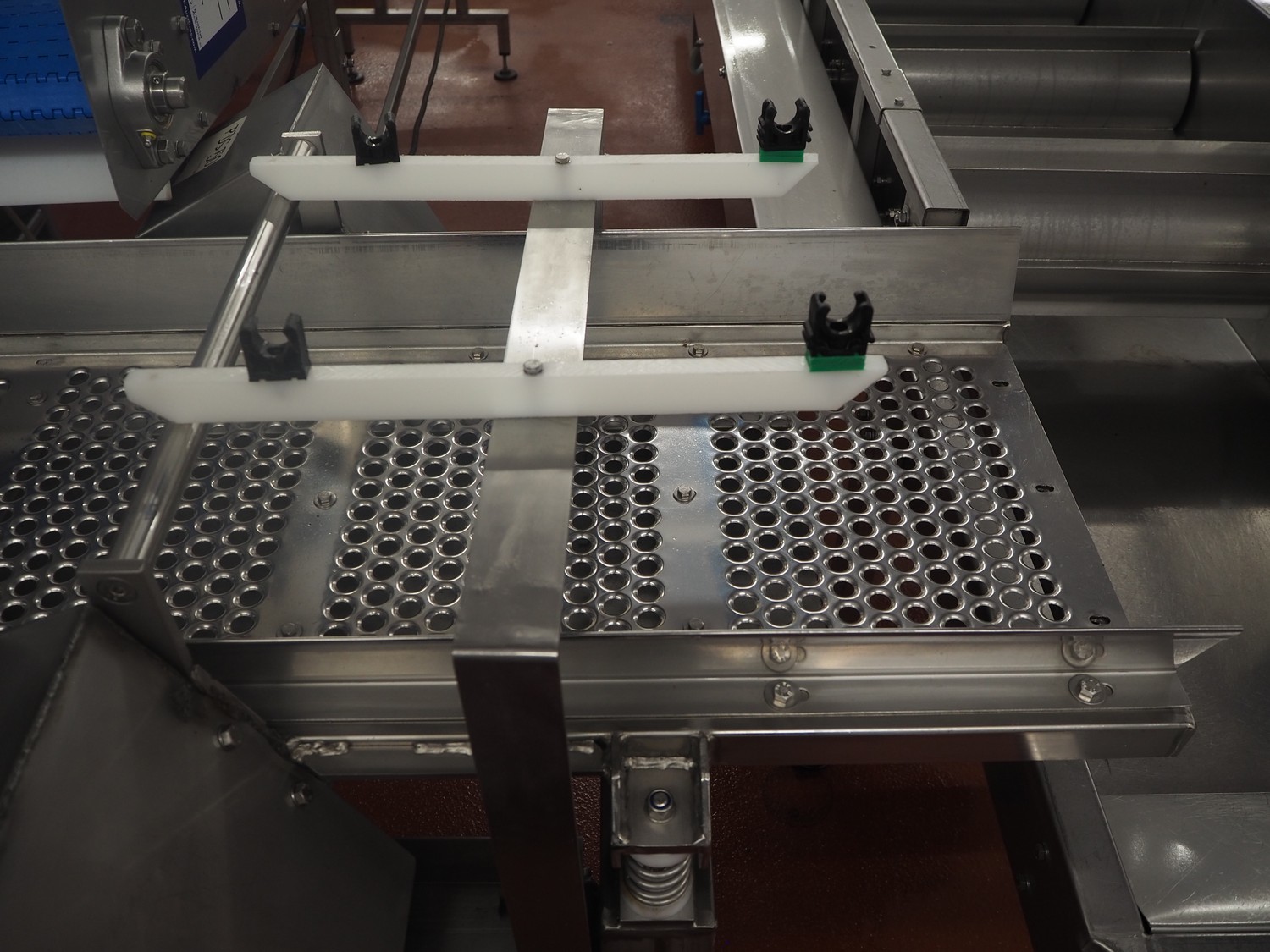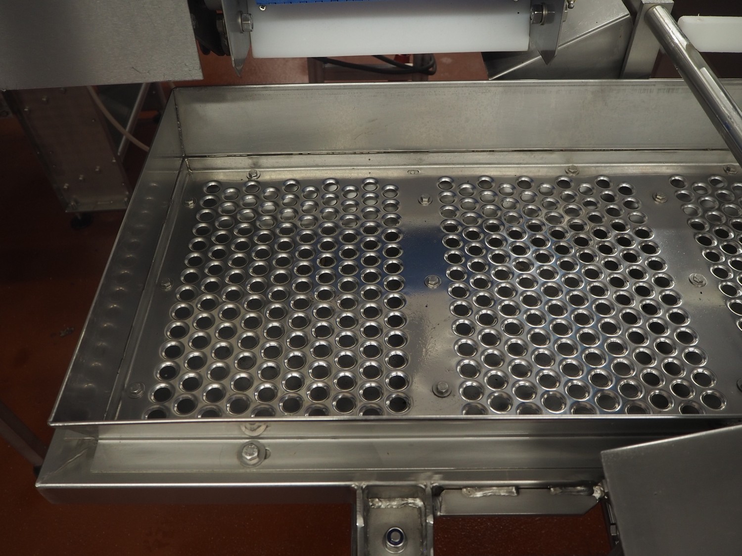 ABL S.R.L. vibrating gutter, year of construction: 2004, 380 V, s/s gutter, gutter width: 390 mm, total dimensions: 1250 mm x 950 mm x 1350 mm.