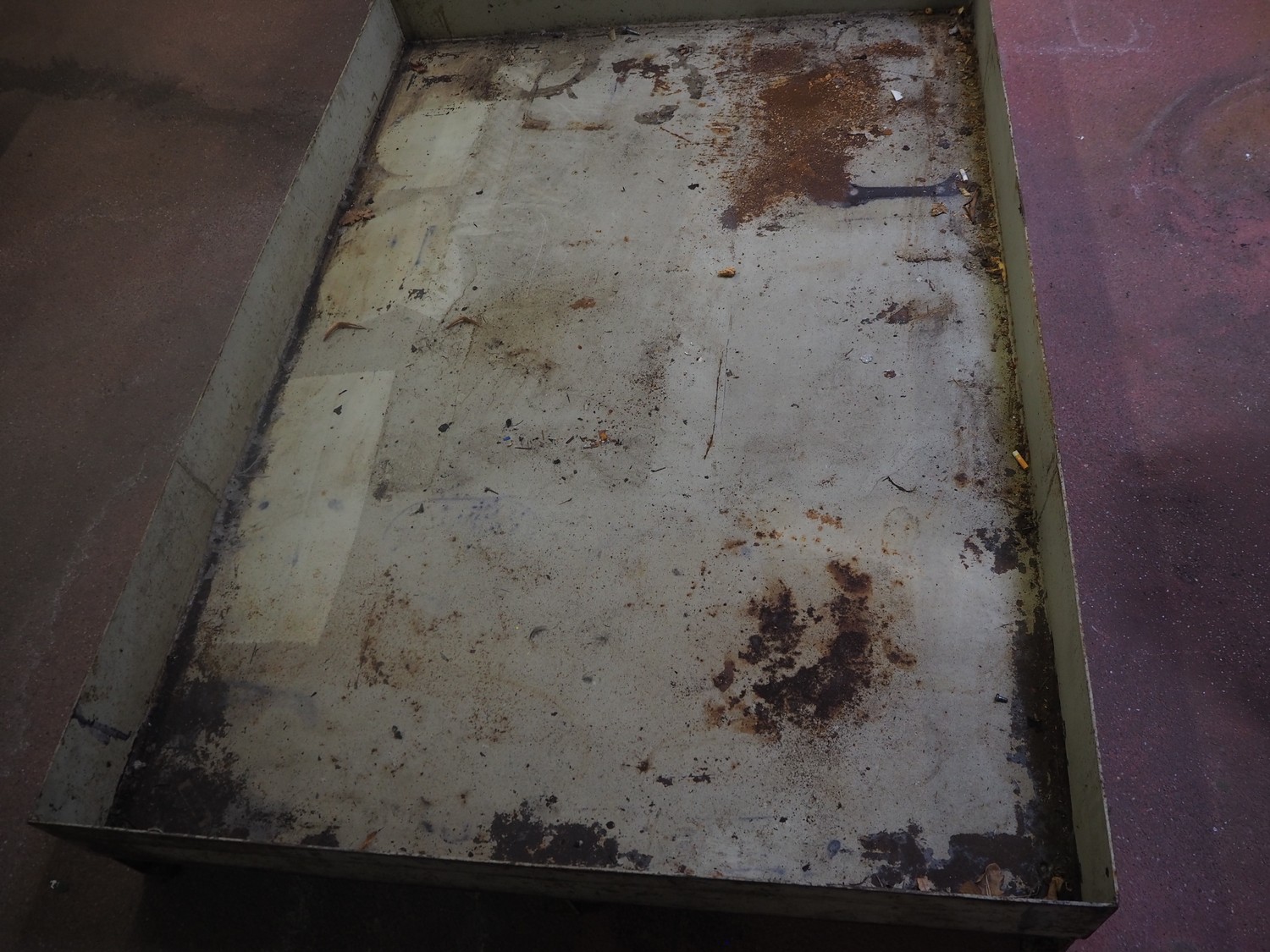 Steel dip tray, dimensions: 1800 mm x 1250 mm x 250 mm.