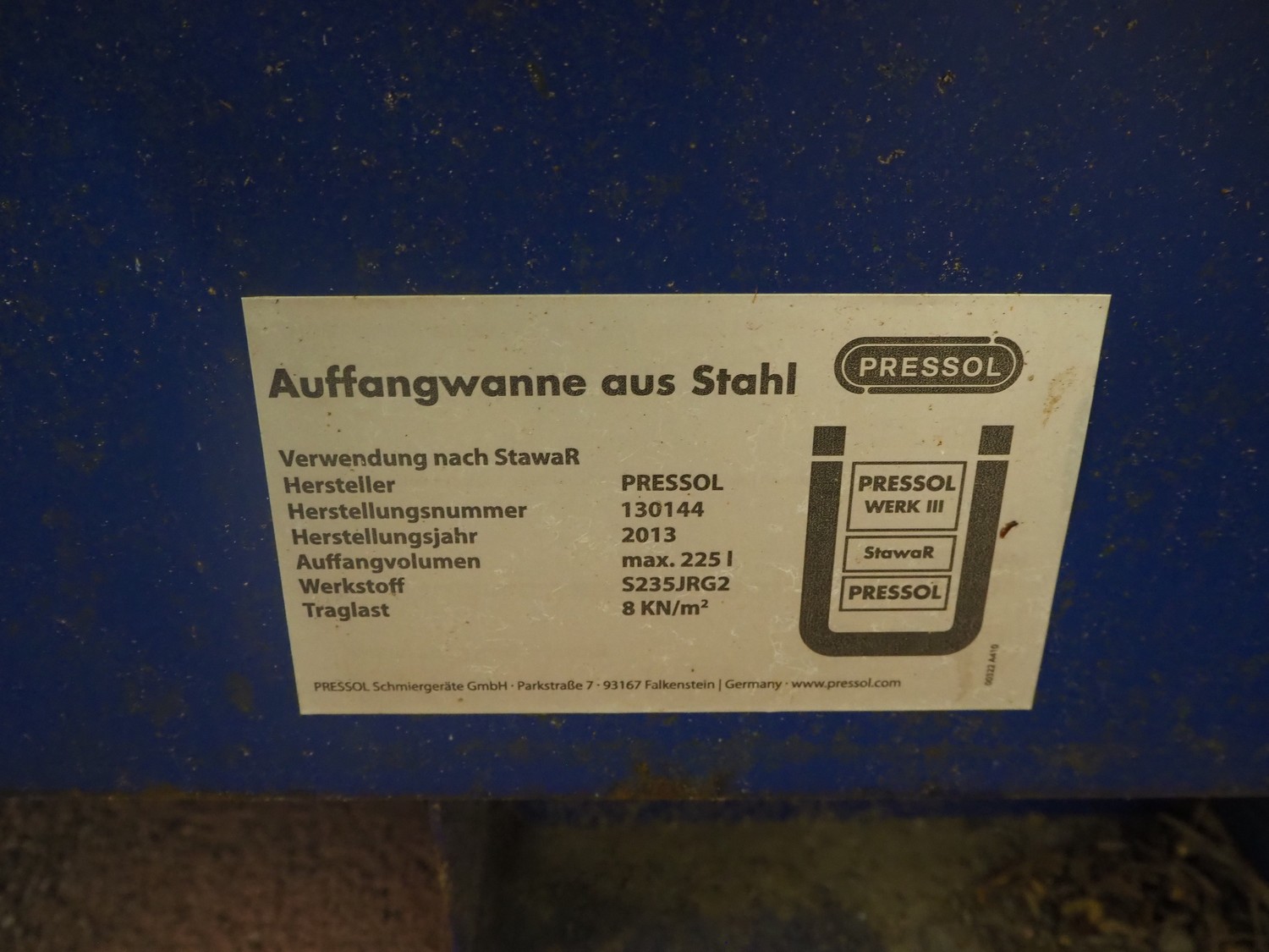 Pressol steel dip tray, number: 130144, year of construction: 2013, with oil tank, dimensions: 1350 mm x 830 mm x 350 mm.