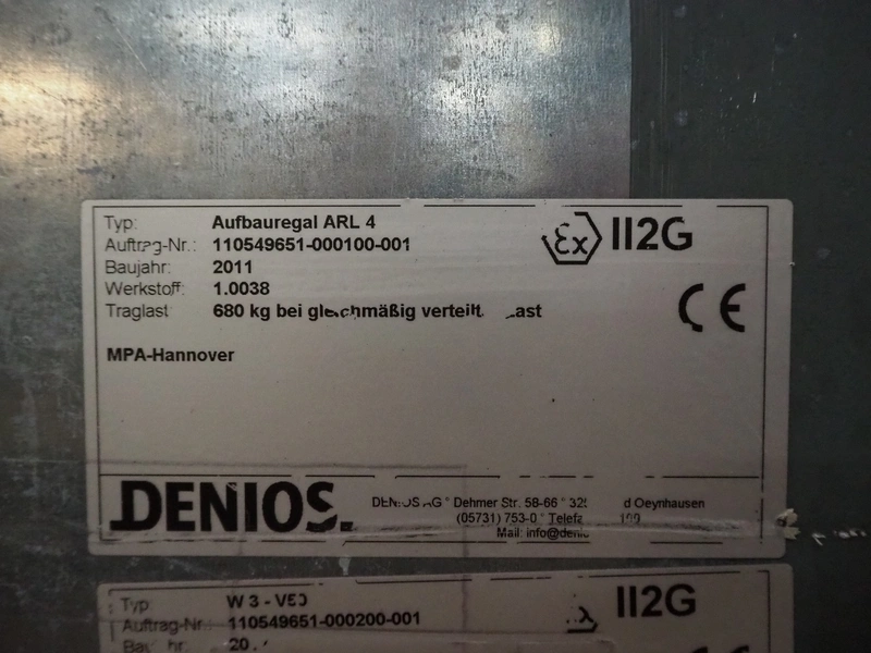 Denios drip tray construction shelf, type: Aufbauregal ARL 4, year of construction: 2011, capacity: 680 kg, type: W 3 - V50, dimensions: 1250 mm x 1250 mm x 440 mm and 1350 mm x 600 mm x 850 mm