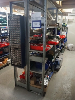 Aluminum rack with large amount of different machine parts, amoung others: small electric components, cables, emergency exit lamps,…0 bidsLot is closed -