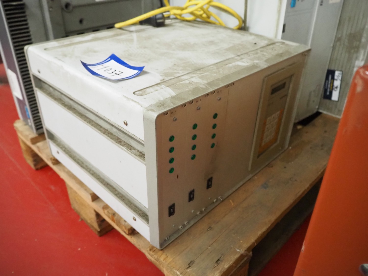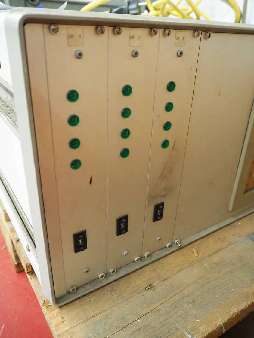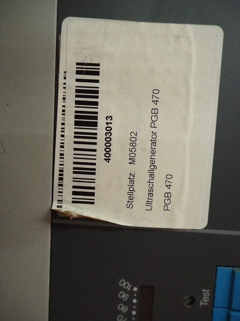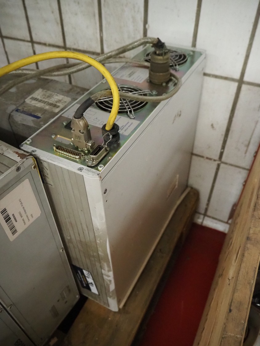 Pallet with 5 Branson PG industrial PCs and 1 Siemens operating panel, dimensions: 1200 mm x 800 mm x 650 mm.