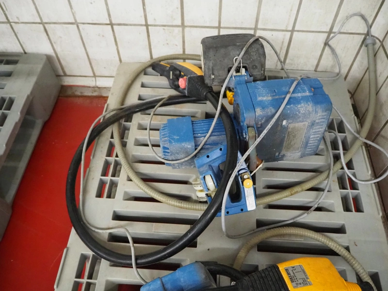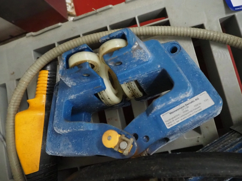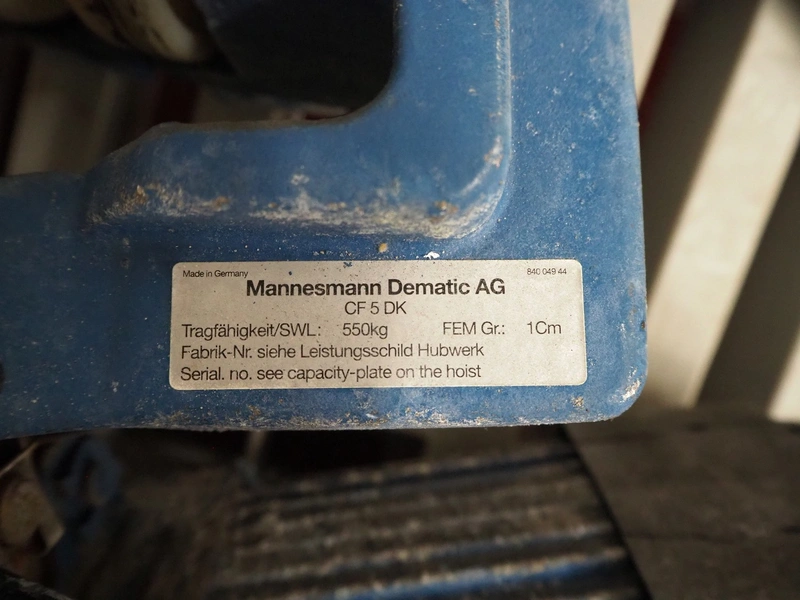 Pallet with 2 Demag hoists, capacity: 125 kg, dimensions: (2x) 550 mm x 400 mm x 250 mm.
