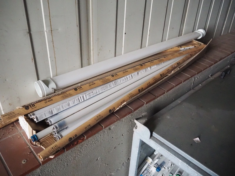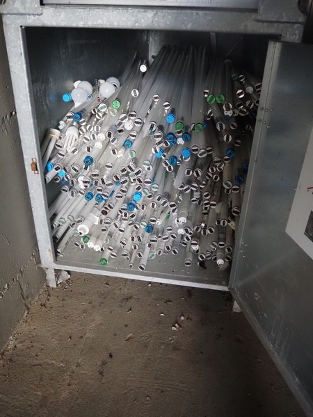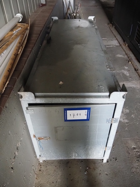 Steel container with various used TL-lights, dimensions: 2070 mm x 750 mm x 1000 mm.