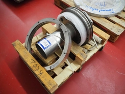 Pallet with various machine parts, among others: motor, transport belts, roller chain and tub.0 bidsLot is closed -