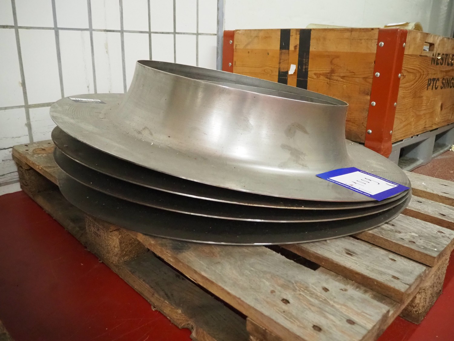 2 pallets with round hoppers, dimensions: (2x) 1200 mm x 900 mm x 600 mm.