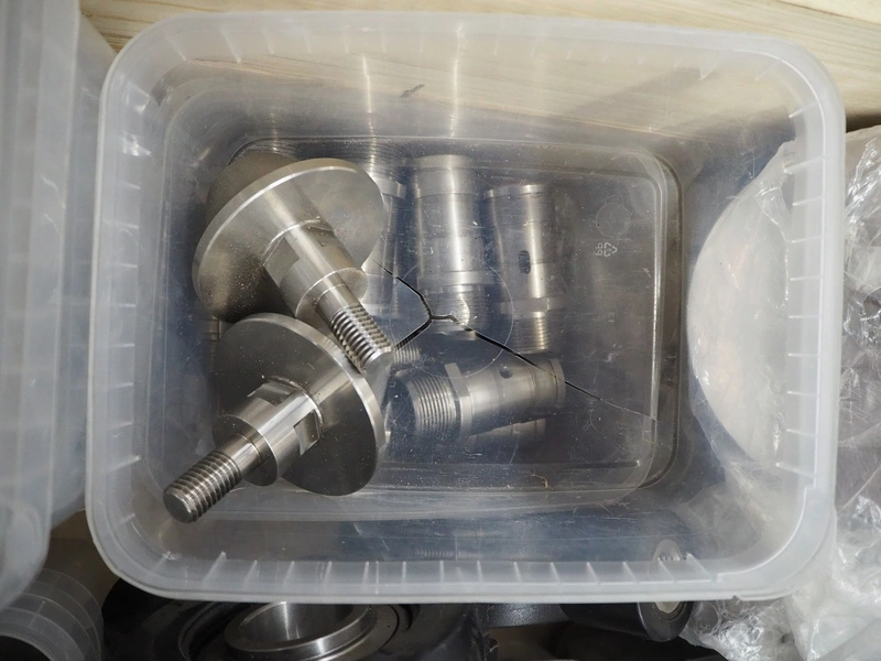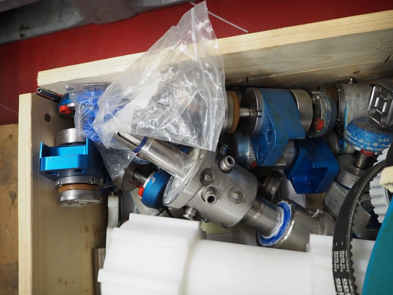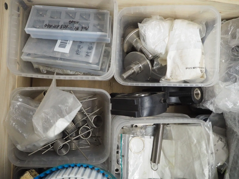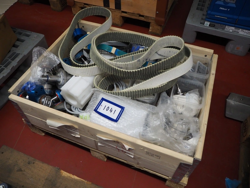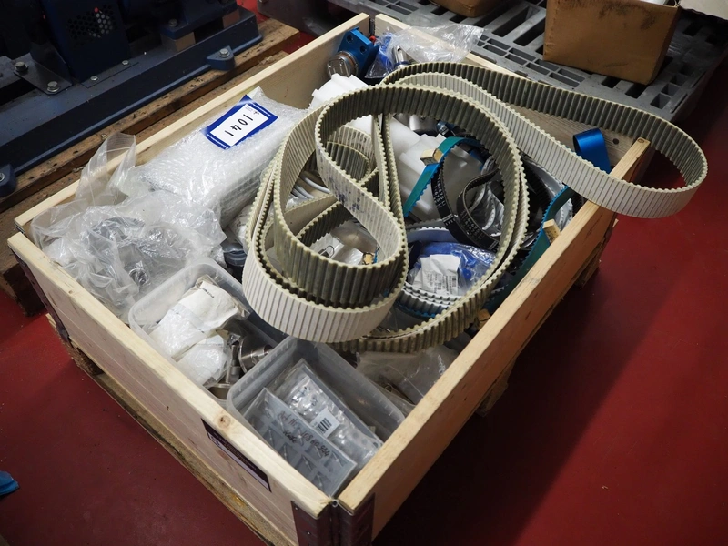 Pallet with various parts for machine drives, dimensions: 800 mm x 600 mm x 400 mm.