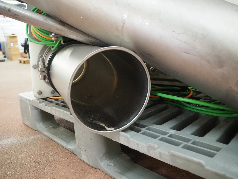 Pallet with 2 parts for dosing units, diameter pipe: 200 mm, total dimensions: 1200 mm x 800 mm x 1370 mm.