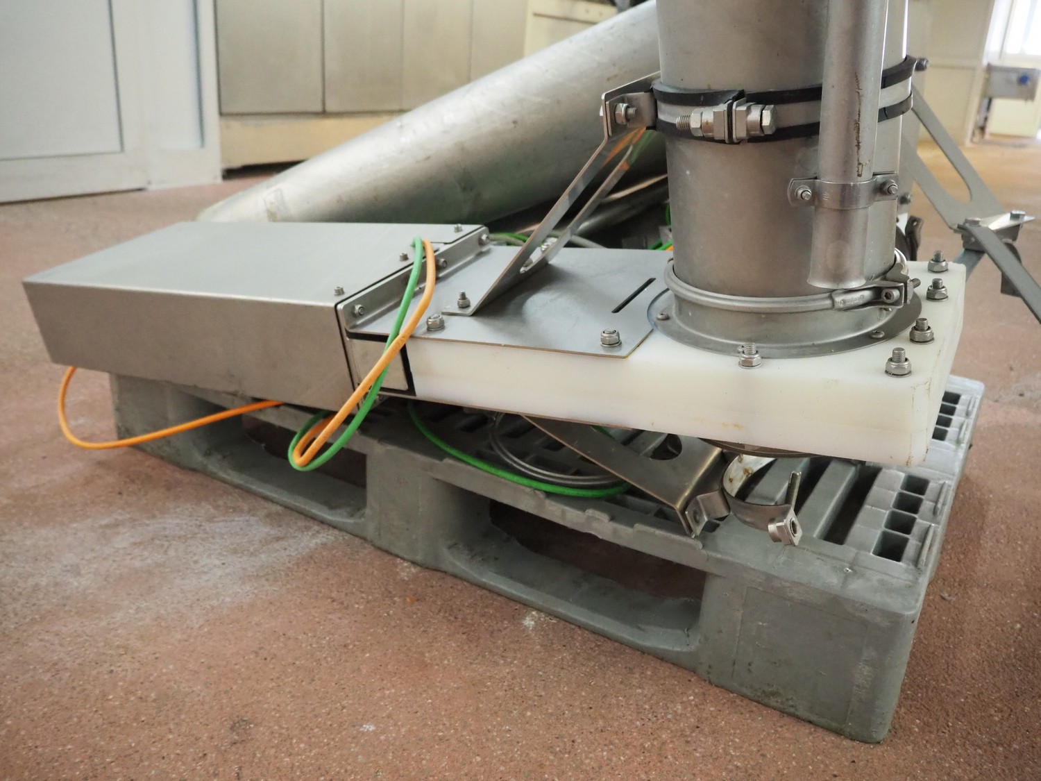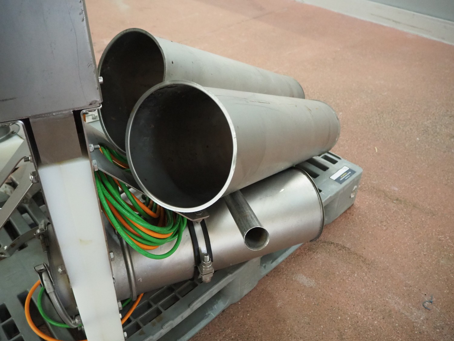 Pallet with 2 parts for dosing units, diameter pipe: 200 mm, total dimensions: 1200 mm x 800 mm x 1370 mm.