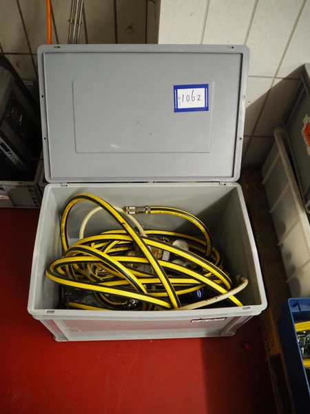 Pallet with spare parts, among others: meters, hoses, valves and cable clamps, dimensions: 1200 mm x 800 mm x 700 mm.