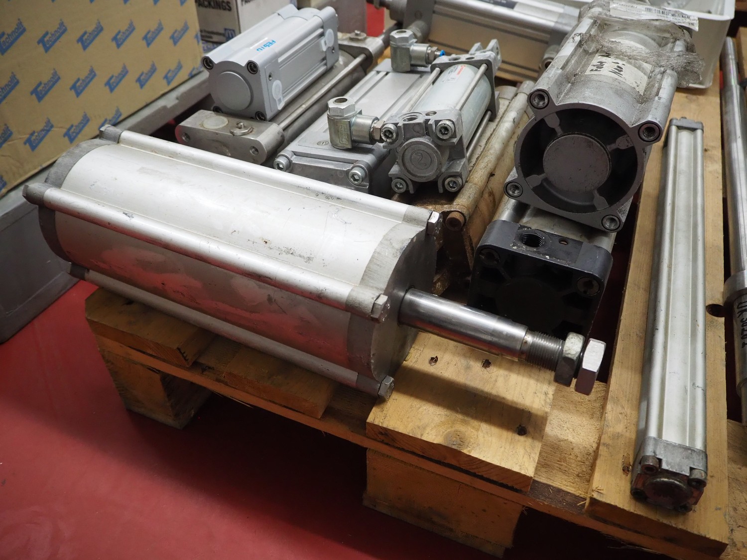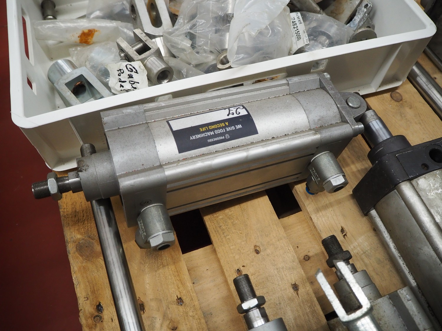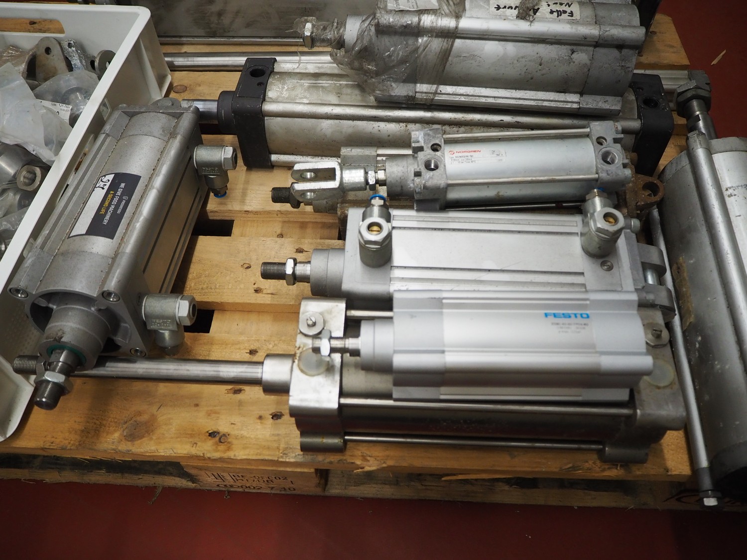 Pallet with large amount of Festo pneumatic arms, dimensions: 1200 mm x 800 mm x 450 mm.