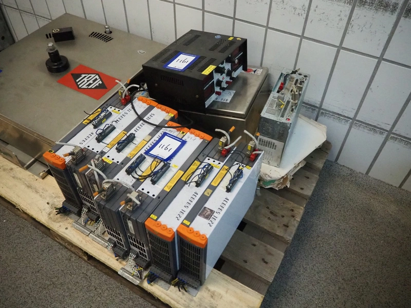 Pallet with parts, among others: servo drives, model: Acopos 1022 and laboratory power unit.