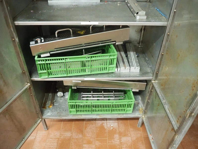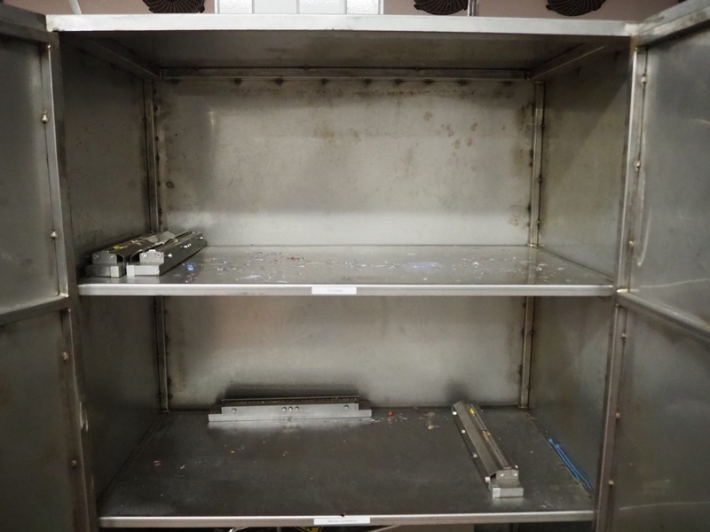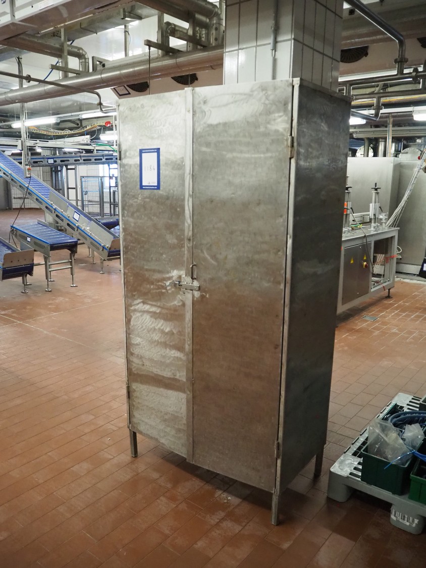 S/s cabinet with parts for Multivac thermoformer, dimensions: 1000 mm x 550 mm x 2000 mm.