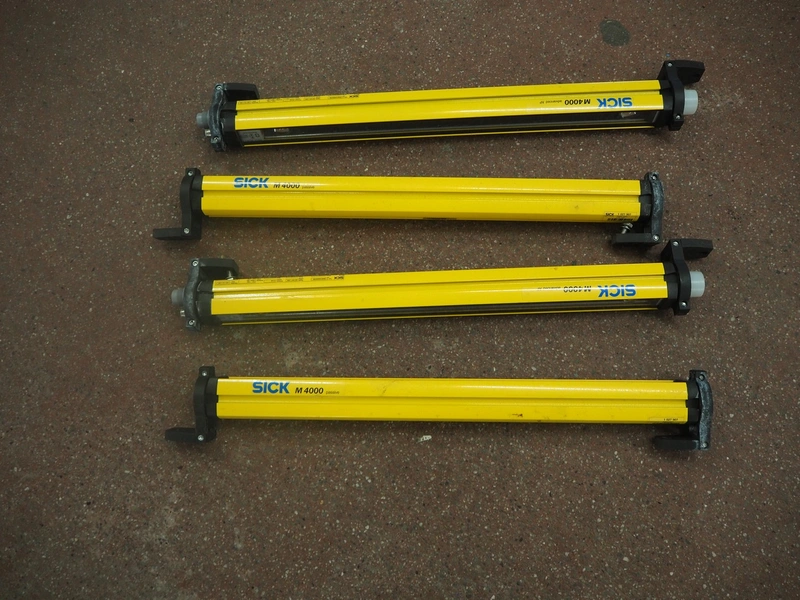 4 Sick safety lasers and 2 switch cabinets, dimensions: 1200 mm x 1200 mm x 450 mm.