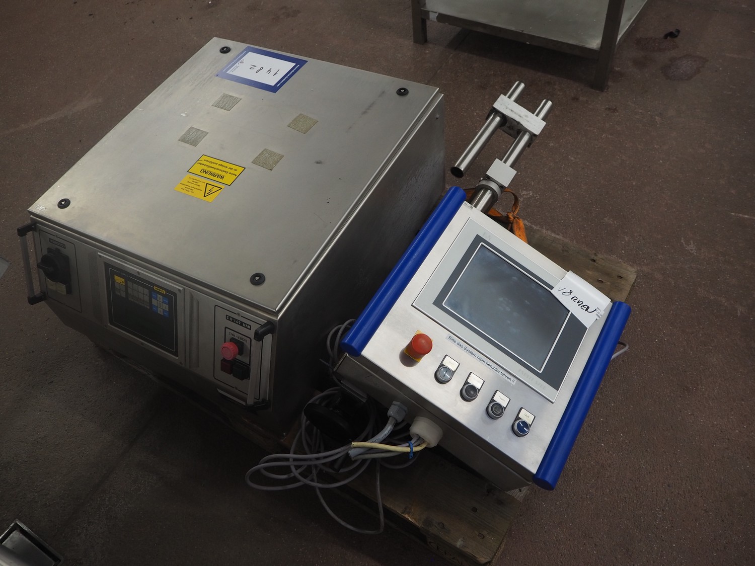 4 Sick safety lasers and 2 switch cabinets, dimensions: 1200 mm x 1200 mm x 450 mm.