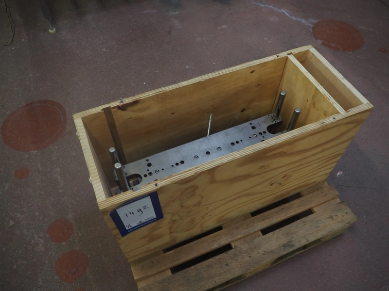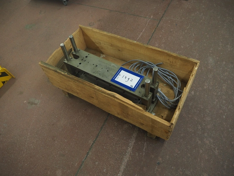 2 wooden crates with hydraulic punches, dimensions: (2x) 750 mm x 220 mm x 380 mm, dimensions crates: 950 mm x 370 mm x 520 mm and 1070 mm x 550 mm x 500 mm.