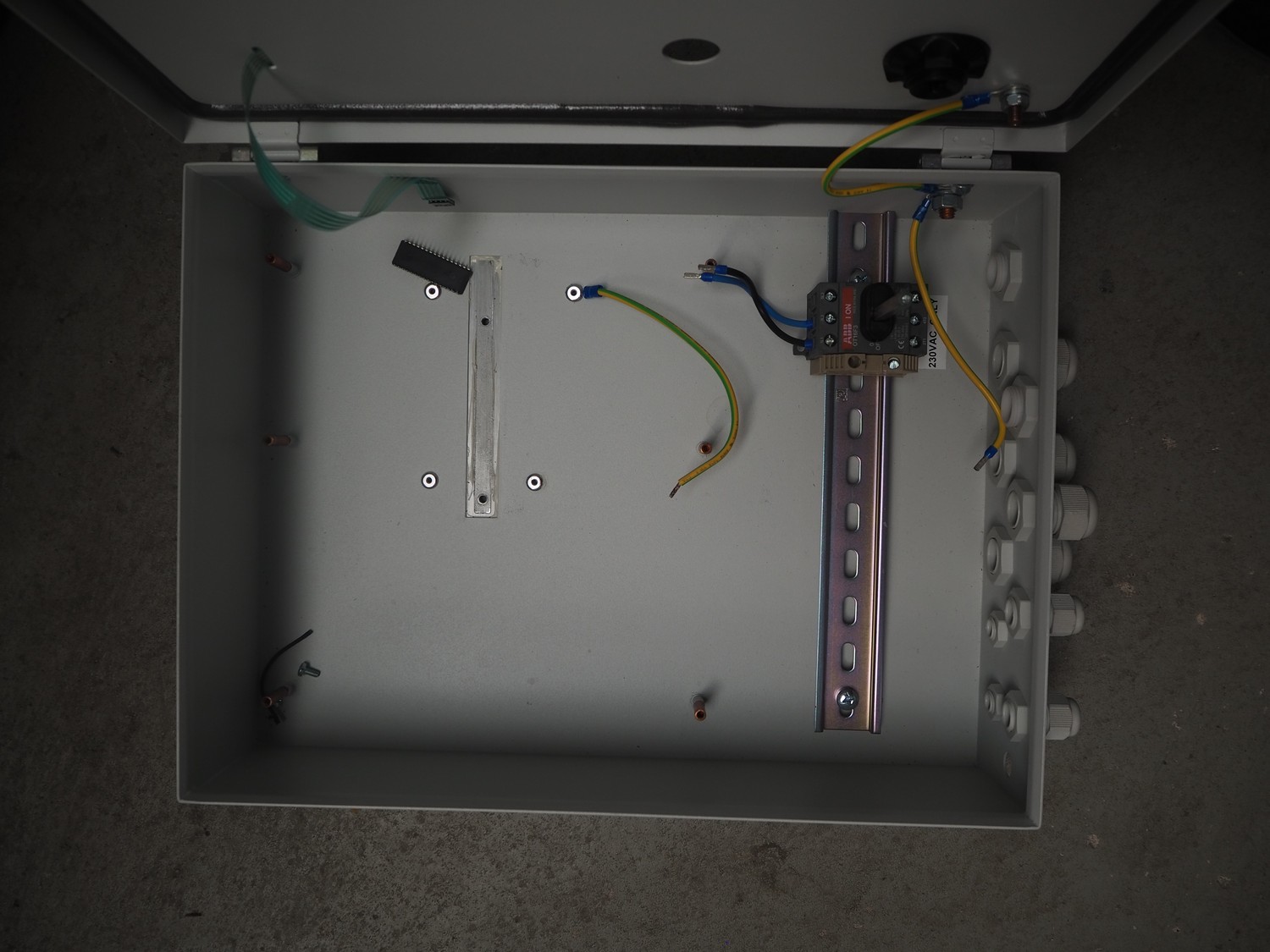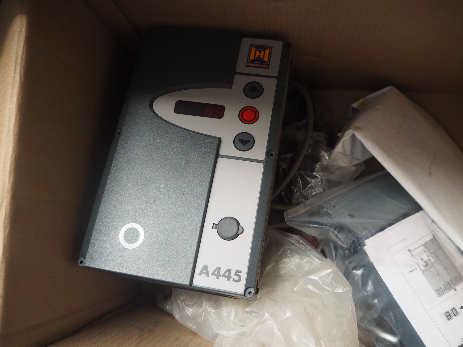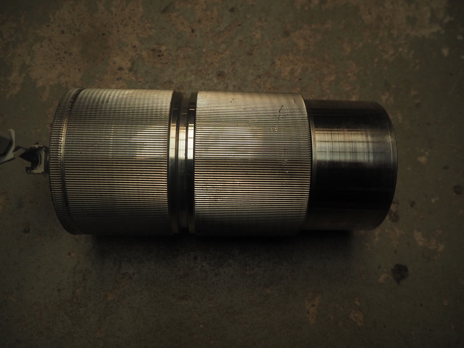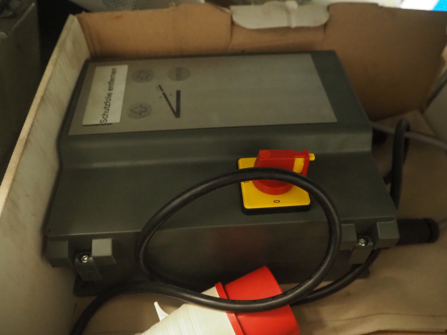 Aluminum rack with large amount of different machine parts, amoung others: vacuum pump, plastic chain conveyor, parts for electric shutter door, electric components, dimensions: 5000 mm x 830 mm x 2100 mm.