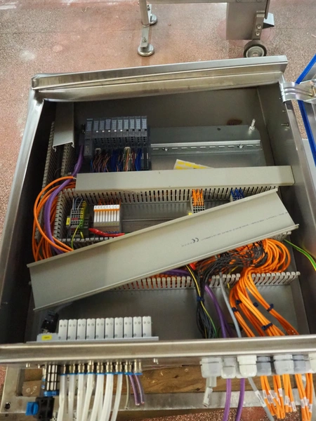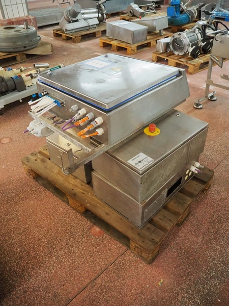Pallet with 5 s/s switch cabinets, dimensions: (4x) 600 mm x 400 mm x 200 mm and (1x) 1000 mm x 700 mm x 280 mm.