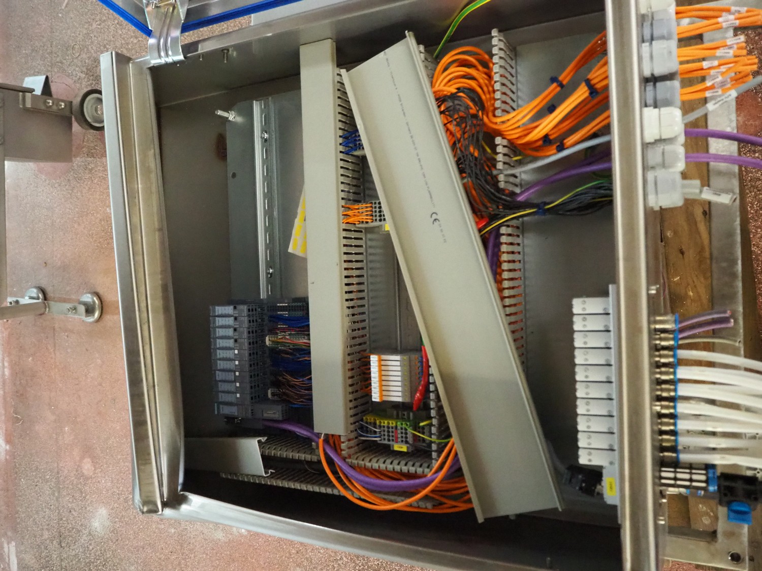 Pallet with 5 s/s switch cabinets, dimensions: (4x) 600 mm x 400 mm x 200 mm and (1x) 1000 mm x 700 mm x 280 mm.