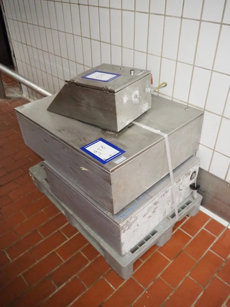 Pallet with 2 s/s switch cabinets and 1 cabinet, dimensions: 1200 mm x 800 mm x 800 mm.