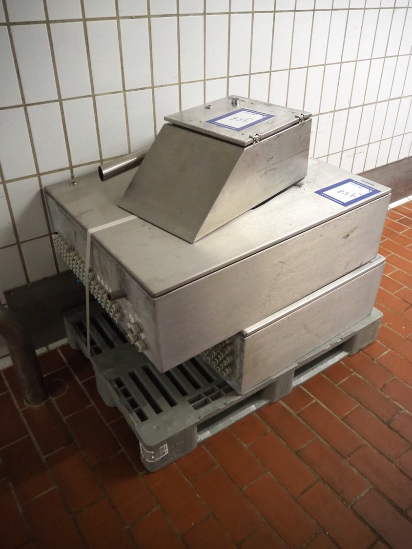 Pallet with 2 s/s switch cabinets and 1 cabinet, dimensions: 1200 mm x 800 mm x 800 mm.